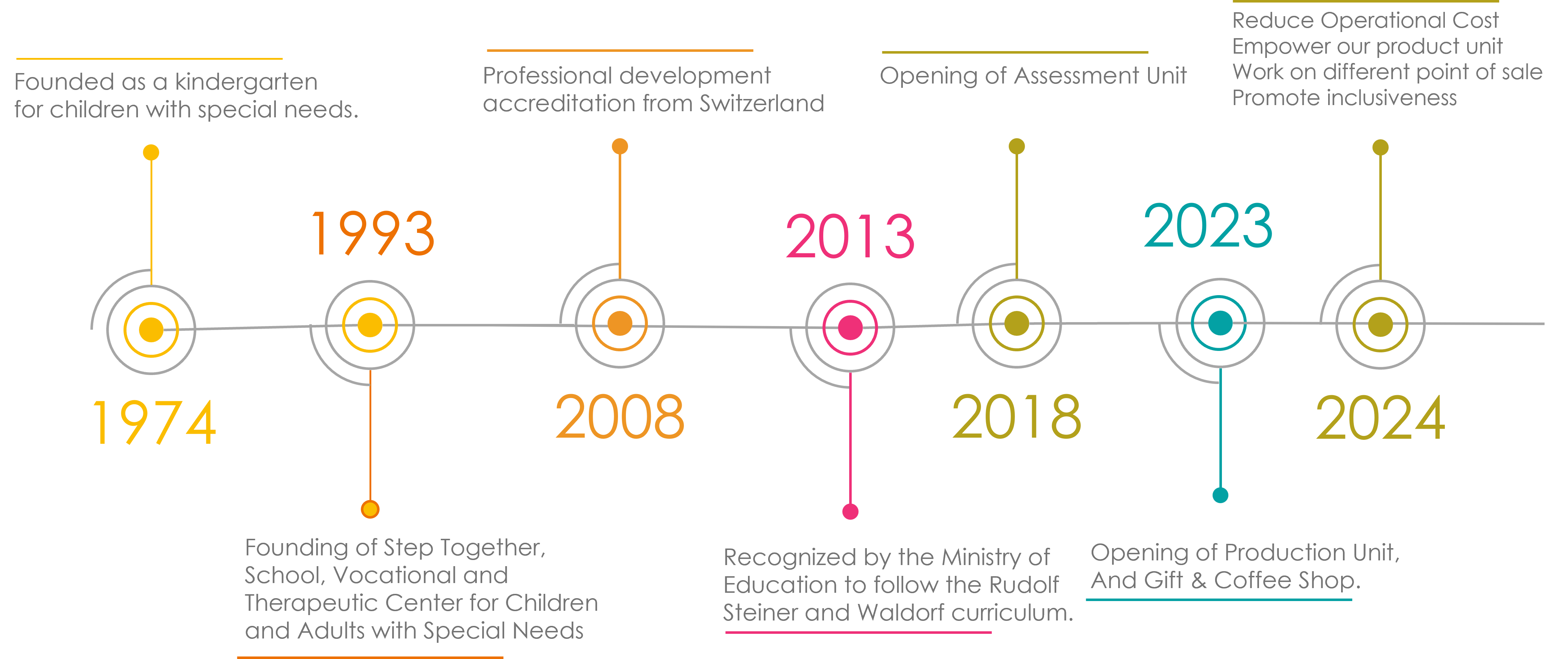 Step Together Association offers a comprehensive along with a holistic approach to education, care, and therapy for around 200 children and adults with special needs with learning difficulties, intellectual disabilities and different levels of autism, ranging in ages between 3 to 60 years old. With a strong view to achieve our goals, we have partnered with Sekem in Egypt and Ruskin mill trust in UK to allocate more research in the Arab world through the exchange of professionals and expertise