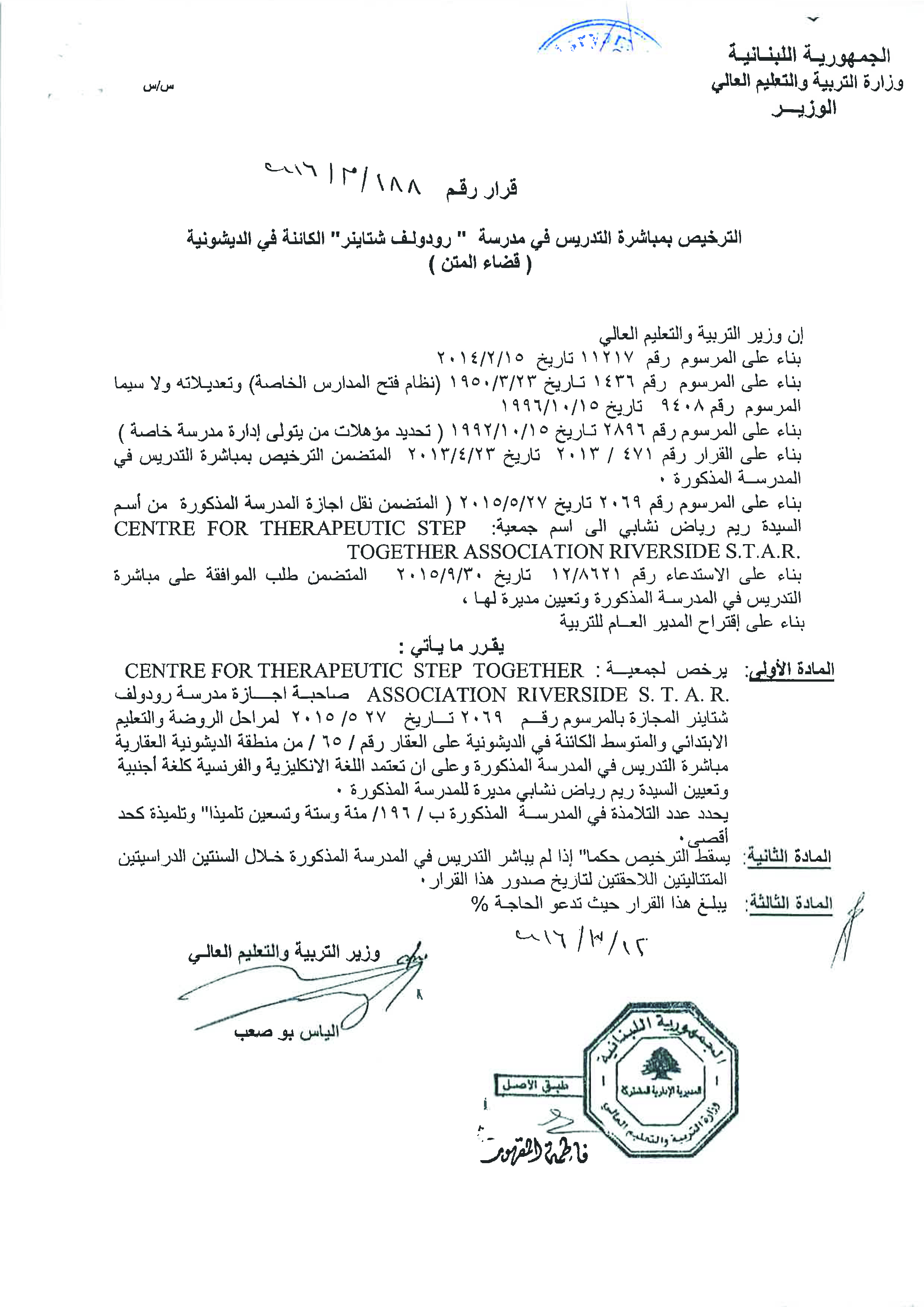 Step Together is officially recognized as a school by the Ministry of Education and Higher Education (MEHE) in Lebanon, operating in alignment with na...